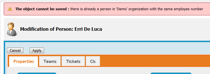 Let's look at the existing uniqueness rules on Person, provided by default in iTop. There are 2 rules: