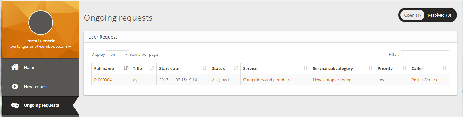 The enhanced customer portal, introduced in iTop 2.3.0, is used by customers to easily create and track user request and incident tickets. The portal provides simplified interface to manage such tickets.