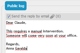 If enabled by your administrator, the reply made in the public log will be sent back to the caller: