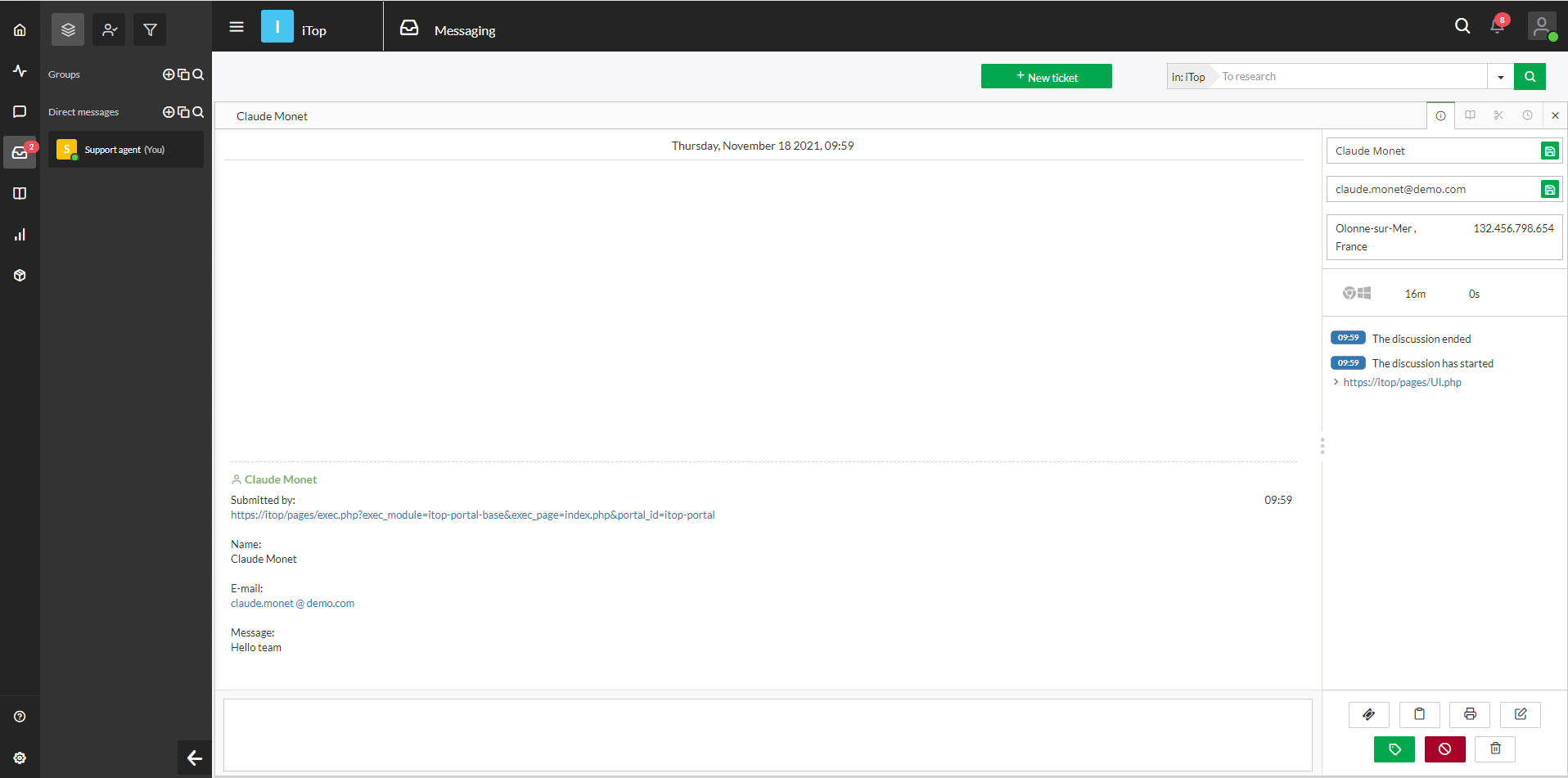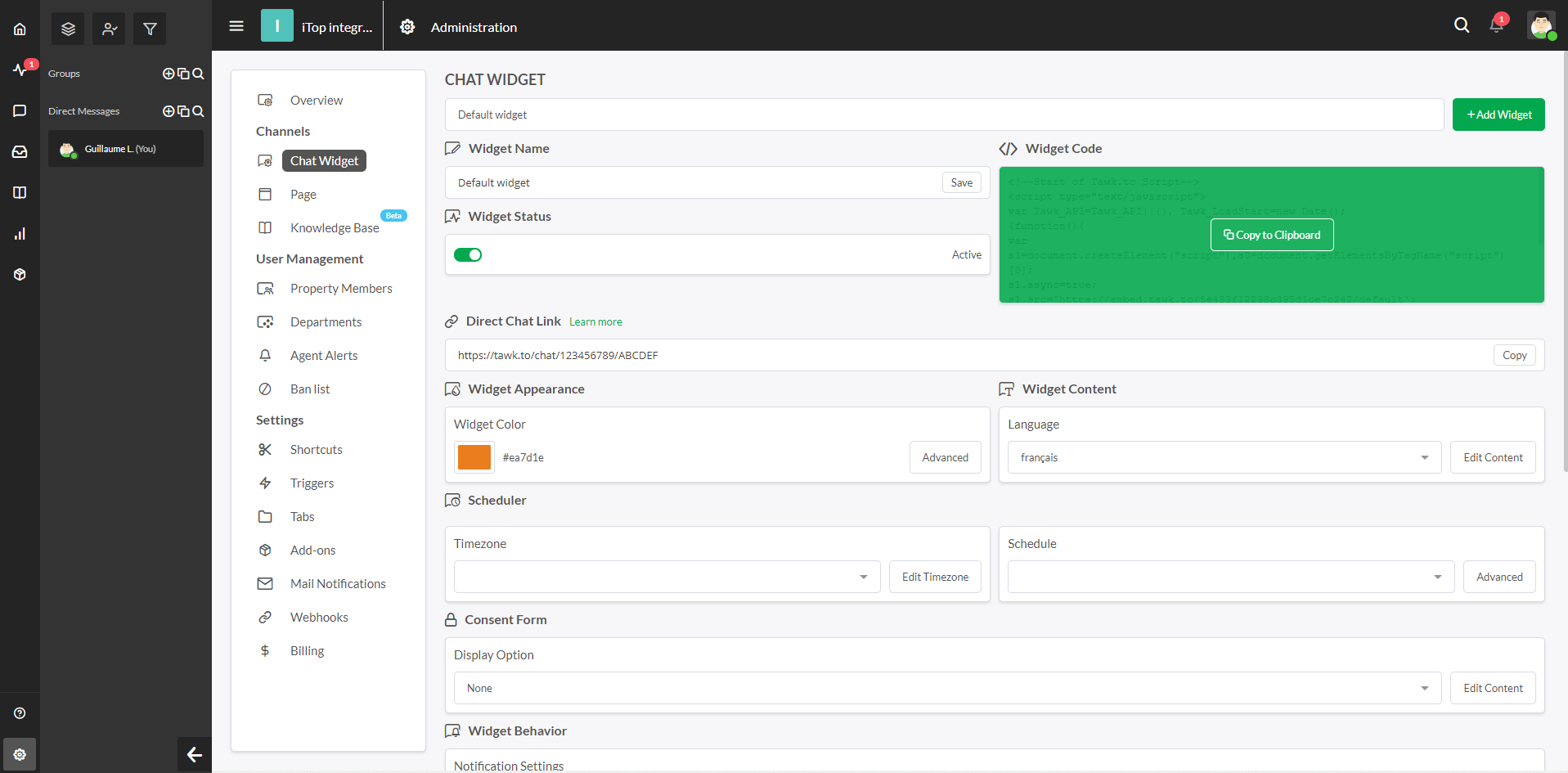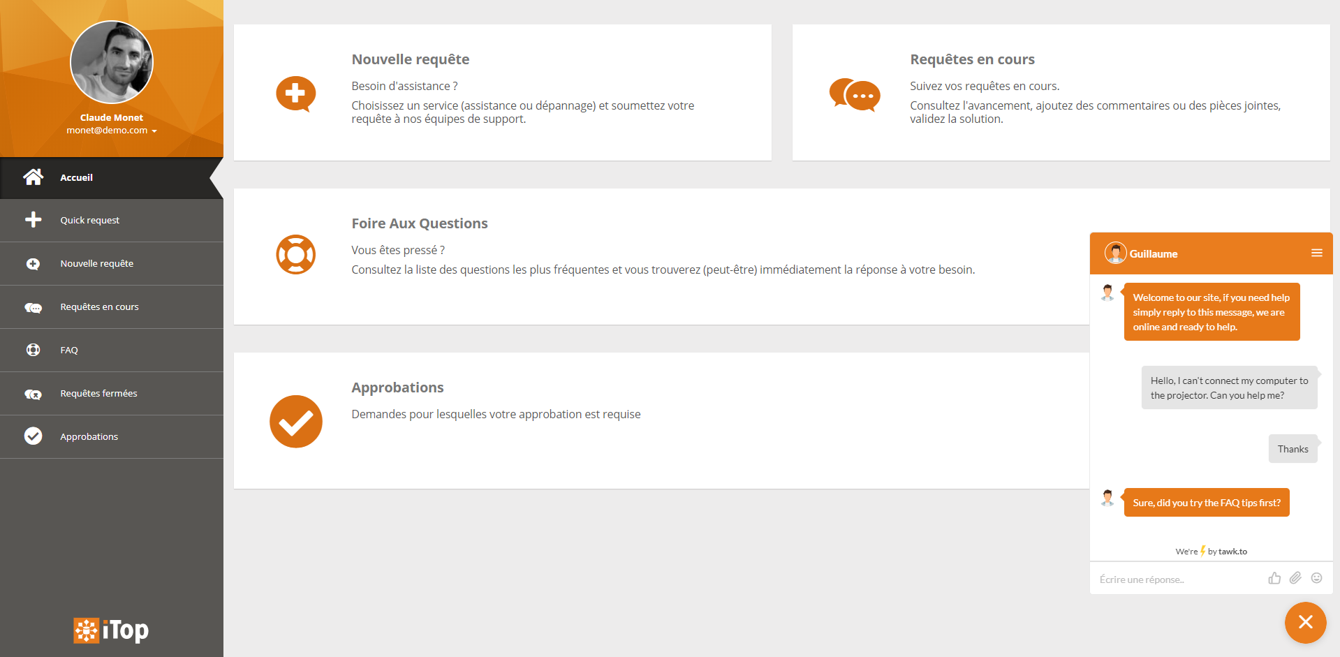 Add a chat widget within iTop to allow end-users to chat with support agents