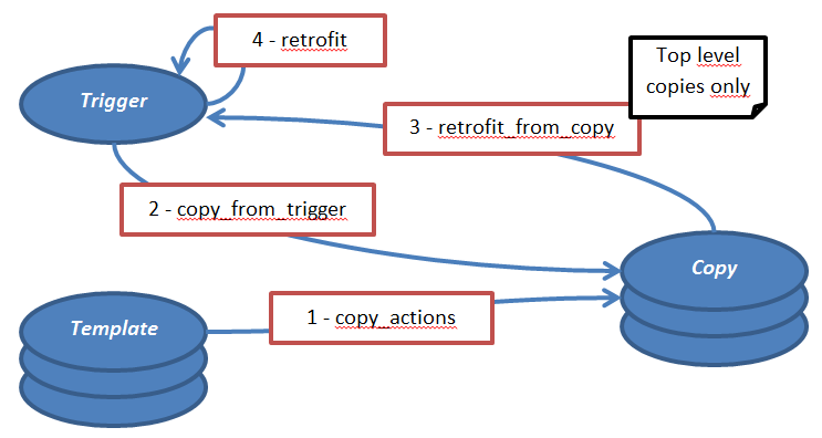 | retrofit | A series of actions (see below explanations) to be executed back on the triggering object. Will be executed once, and after all the retrofit_from_copy actions have been performed | … |