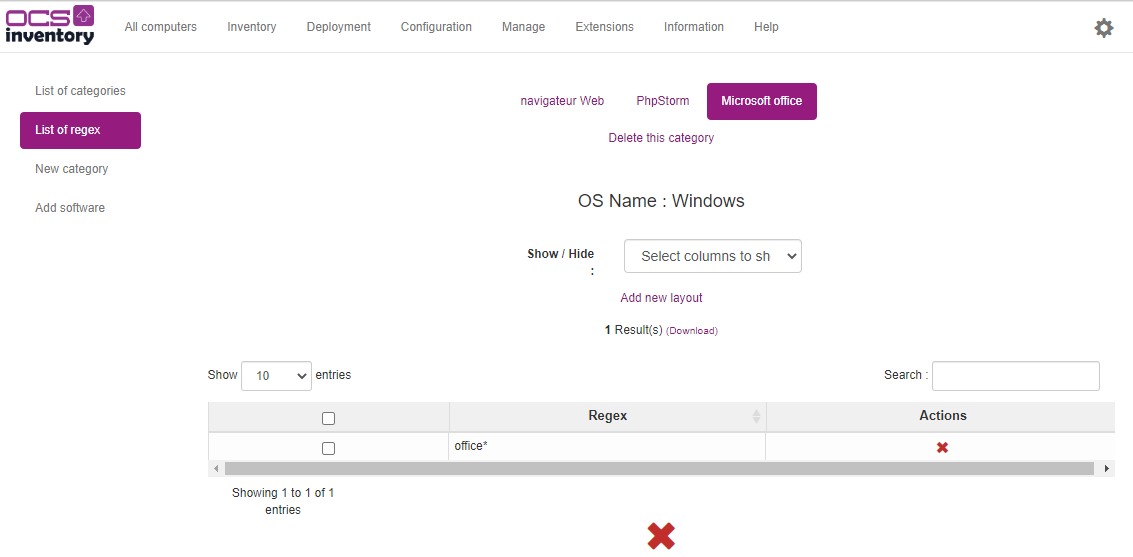 First configure software categories in OCS thanks to Software Category menu below Manage