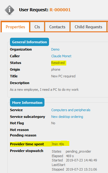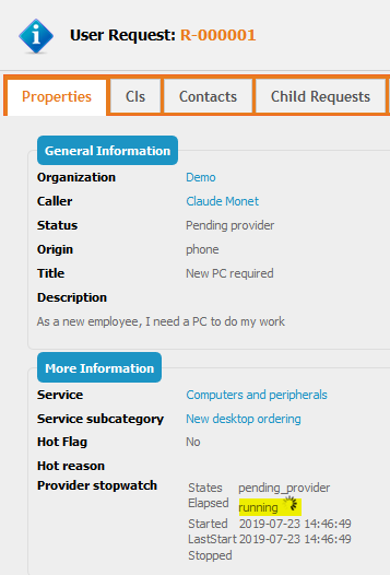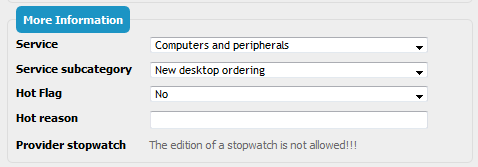 <!-- Display the 2 new fields in the details of the UserRequest --> <presentation> <details _delta="must_exist"> <items> <!-- First column of the UserRequest display --> <item id="col:col1"> <items> <item id="fieldset:Ticket:moreinfo"> <items> <!-- Add the provider timespent delay --> <item id="pending_provider_delay" _delta="define"> <rank>80</rank> </item> <!-- This displays a stopwatch (including some sub-items) --> <!-- This will help you to understand how a stopwatch behave --> <item id="providerstopwatch" _delta="define"> <rank>90</rank> </item> </items> <rank>20</rank> </item> </items> </item> </items> </details> </presentation>