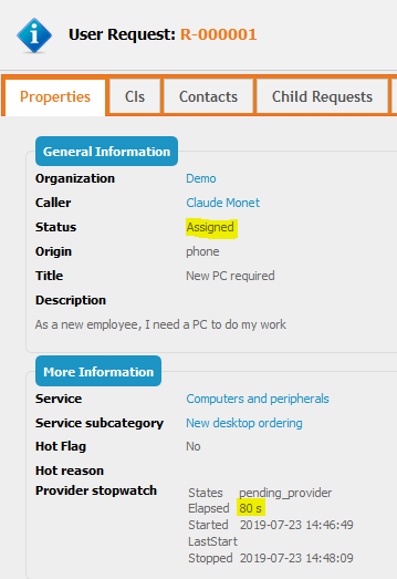 5. User Request is moved back again from “Pending Provider” to Assigned: