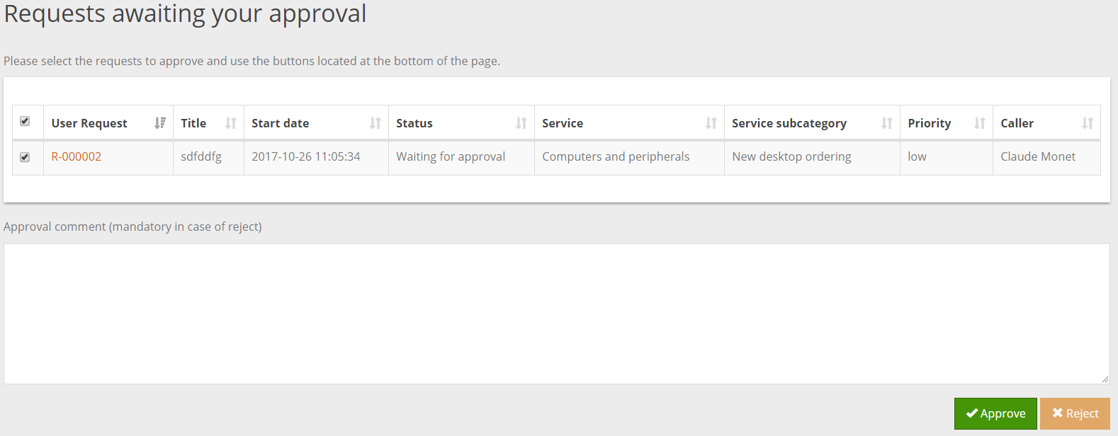 A user request is controled by a workflow in order to make sure it is managed according to a defined process. Only authorized users can manage a user request and change its status.