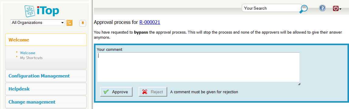 The email contains a web link to display the web page to approve or reject the request. The approver does not need to login into iTop (the links contains that information).