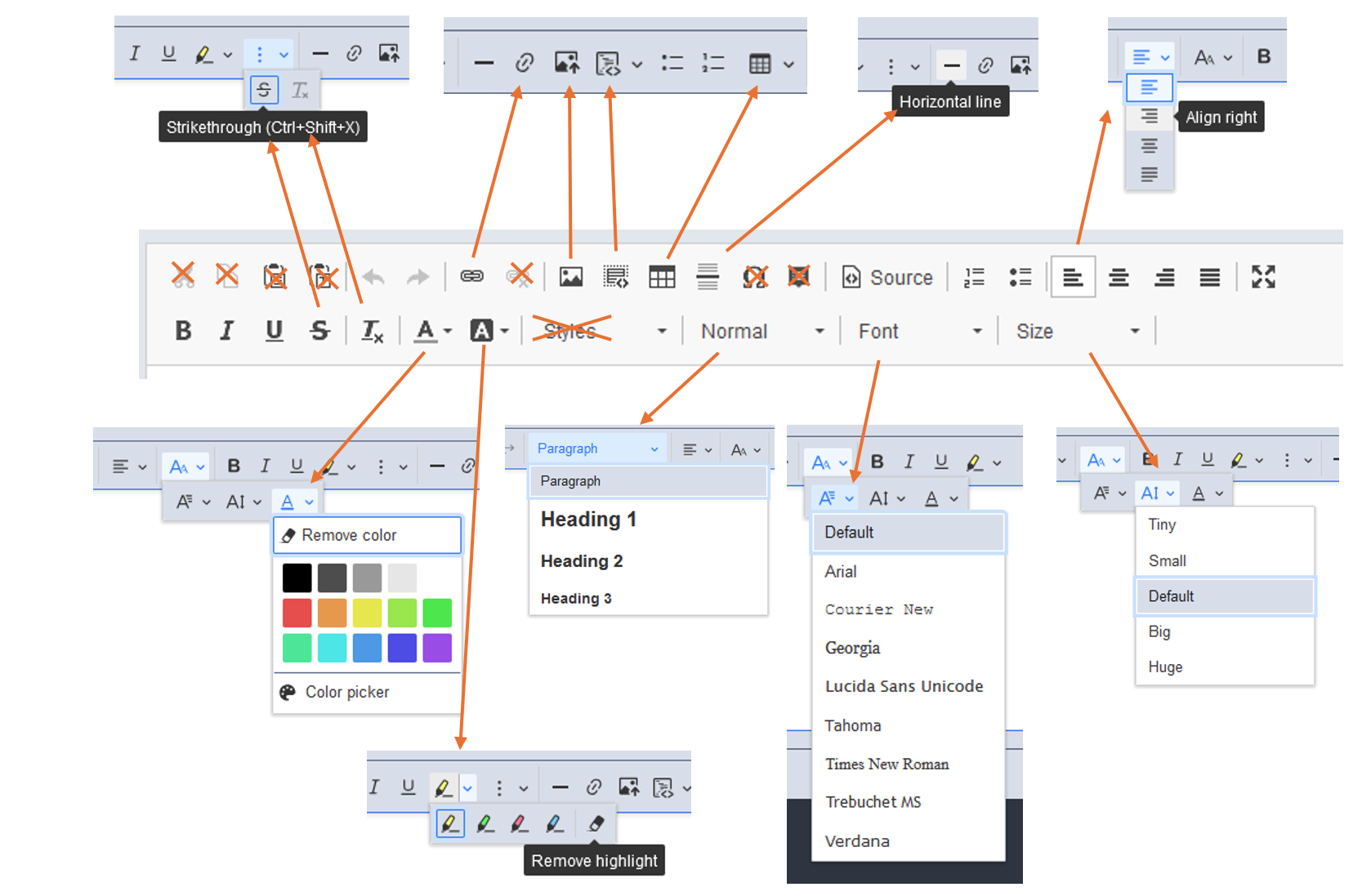 iTop is using an external provider tool, called CKEditor, which had to be upgraded for maintenance and security reason. The new version being quite different that the previous one, most edition possibilities are preserved with different icons, a few were lost and new one were added.