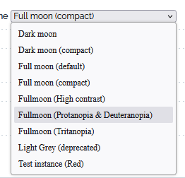 Color blind theme : Designed to help users with colorblindness, this theme actually breaks down in two sub-themes to adapt to specific cases: