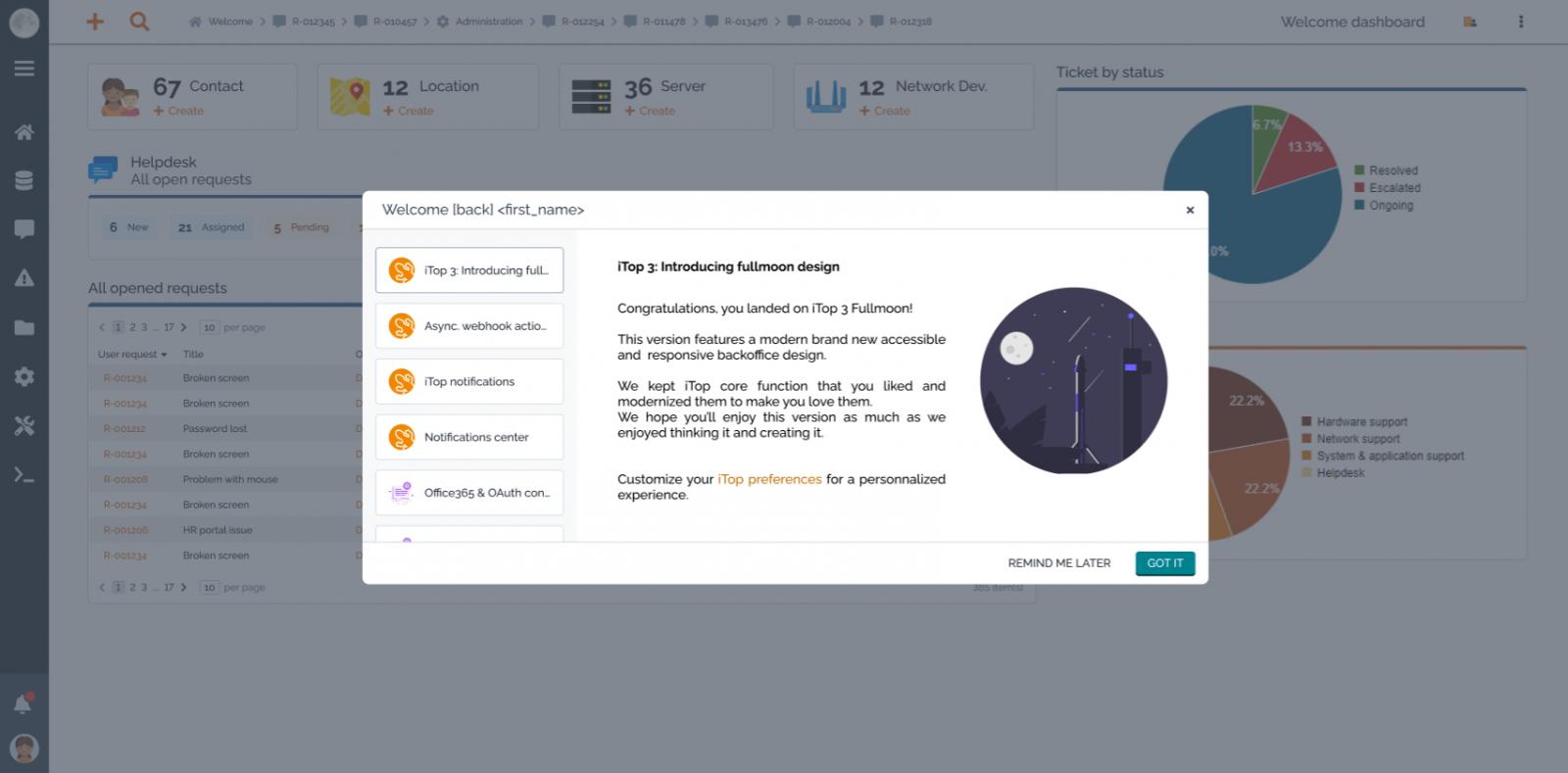 This version brings a new action to notify back-office users through News displayed in iTop.
