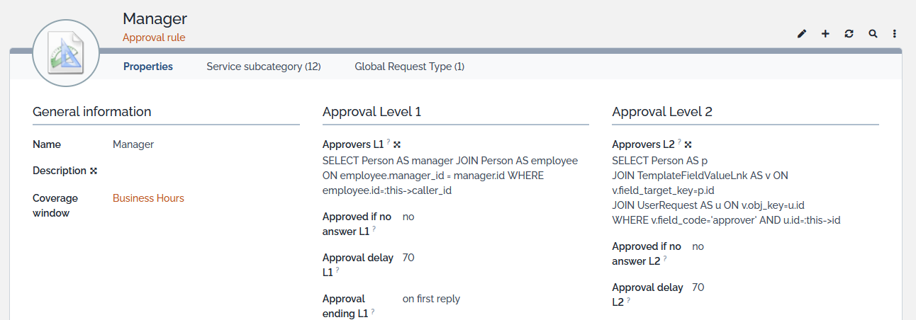 Here we propose to define RequestTemplate per Service, but you could imagine to do it per Organization, Priority or any combination of UserRequest fields
