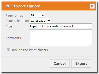 Include the list of objects: if checked, the list of the objects in the chart will be added as a big table as additional pages in the PDF document.