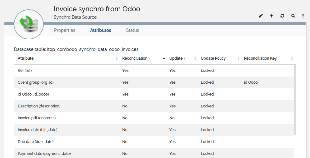 | Update | Specify if that iTop object attribute should be updated by the Datasynchro |