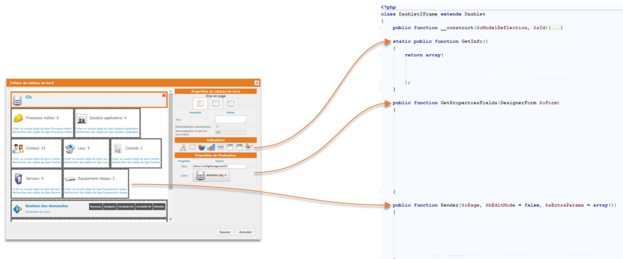 In this case, the code is pretty simple as we just want to display an iframe tag pointing to an URL. But this is where you should do your dashlet's logic, retrieving objects through OQL, computing stuff and all. As you have access to the $oPage element, you can even bring CSS or JS files/snippets. Sky is the limit!