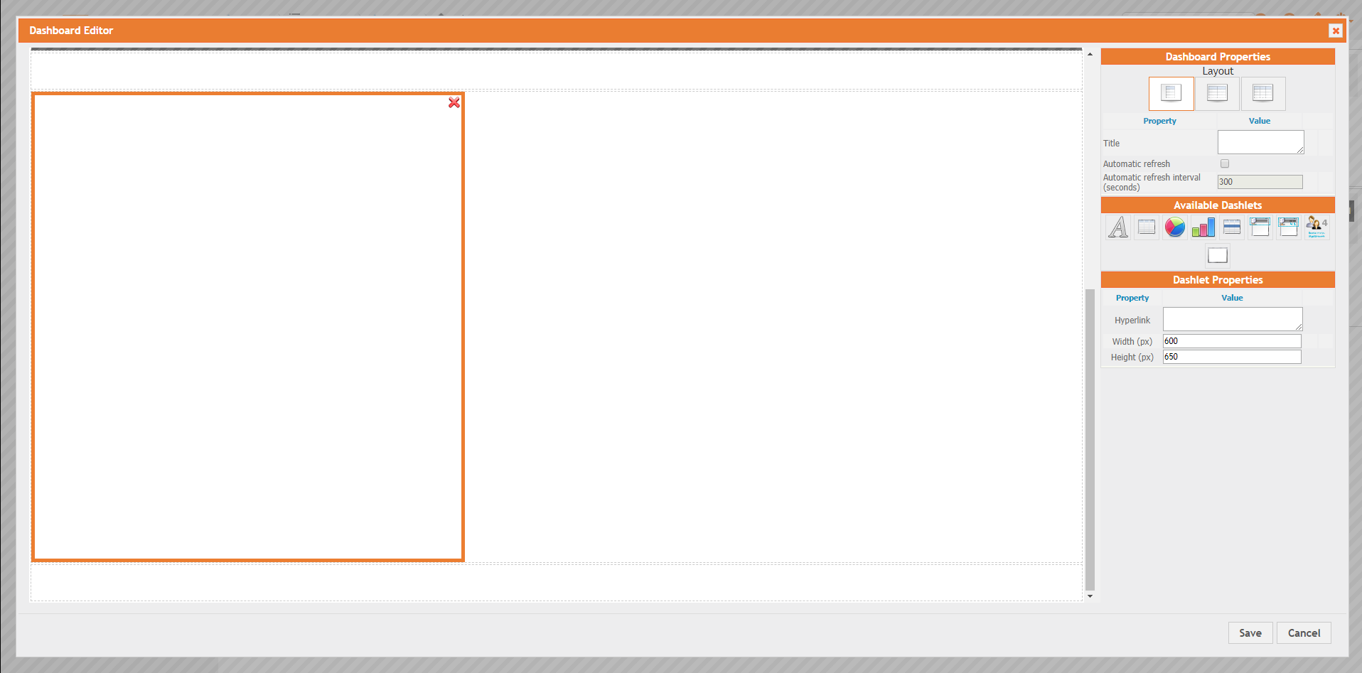 The following form gets displayed when you drag & drop the dashlet to the dashboard: