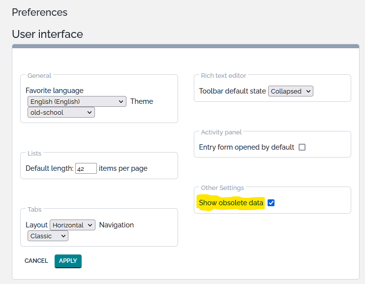 Based on user preference, objects which are defined as obsolete, are removed from displayed lists in the iTop console.