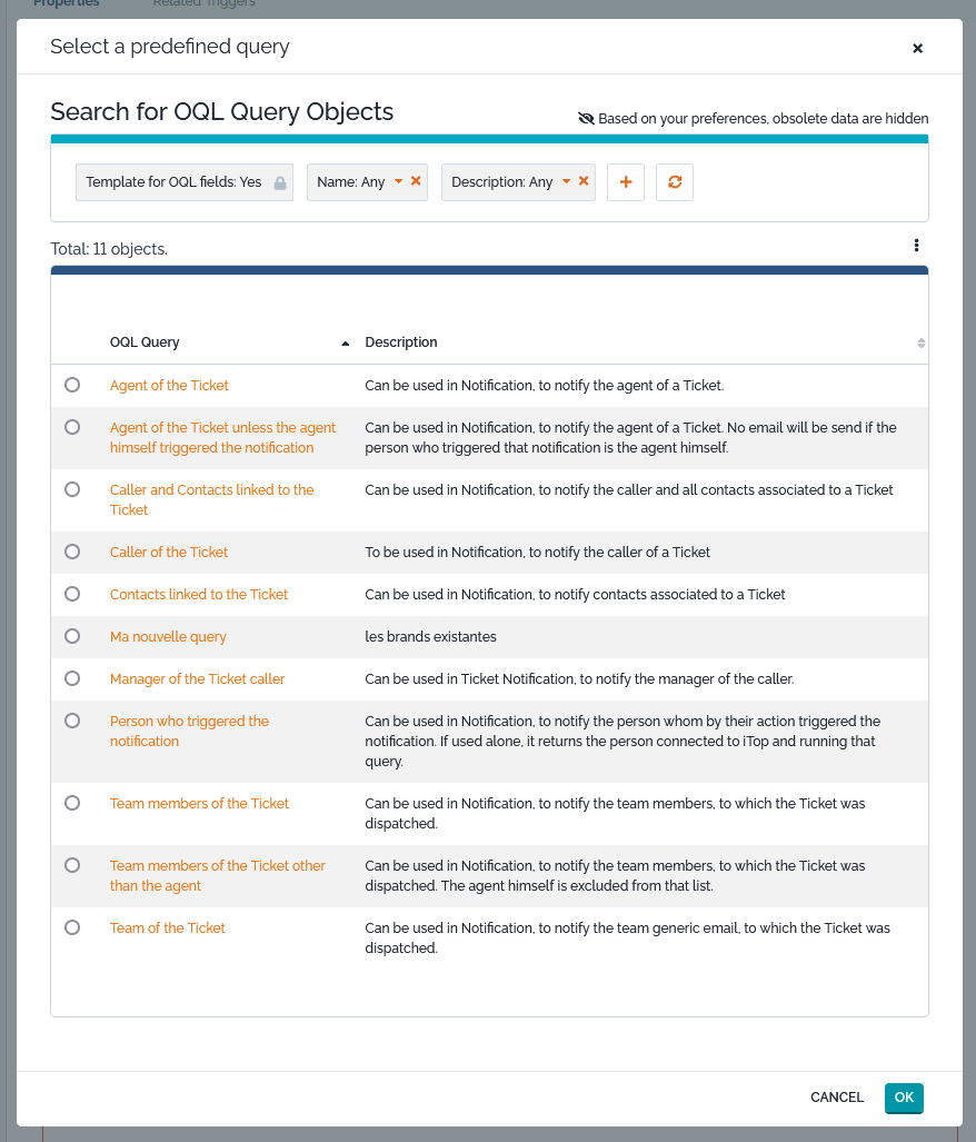 • When there is more than one applicable Trigger (on mention), then iTop does a UNION of the various Mentioned filter