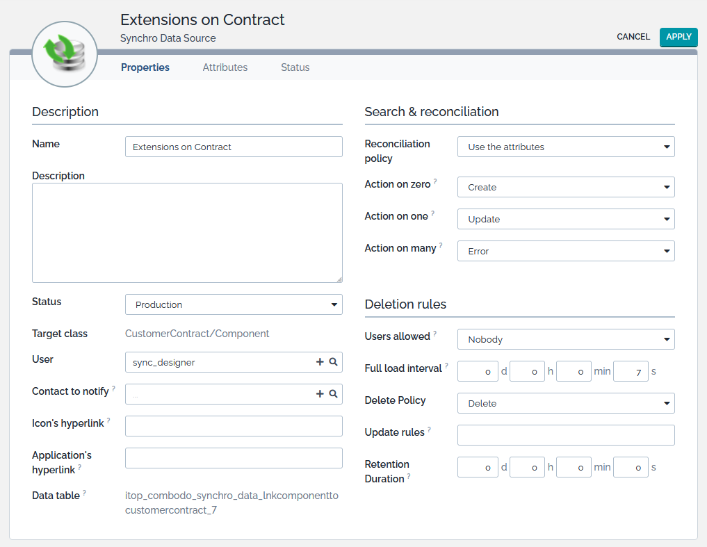 | Icon's hyperlink | Optional | The hyperlink (URL) to an image representing this data source. This icon is shown instead of the default icon in the tooltip appearing on the “Lock” symbol next to the title of the synchronized object in iTop | |