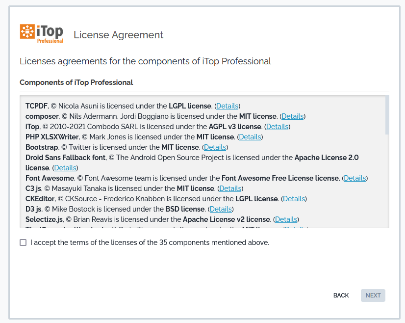 The installation of iTop is generally performed interactively using the “setup” page. However once information about the desired configuration has been collected by the setup page, the actual installation process is fully unattended and therefore can be automated.
