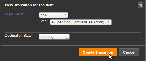Add Transition | Create a transition from one state to another, based on a specific event |