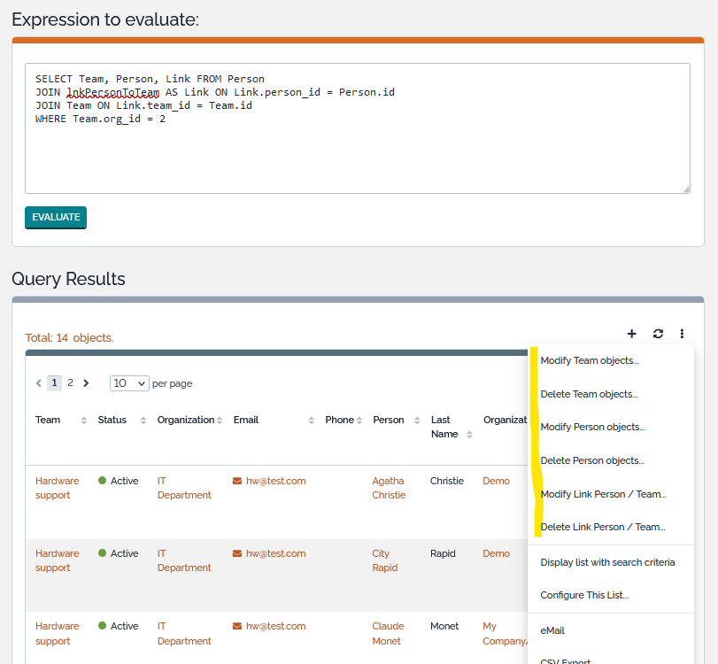 Now in every list (dashlet list, object relation tab, run query result, …) you can click on