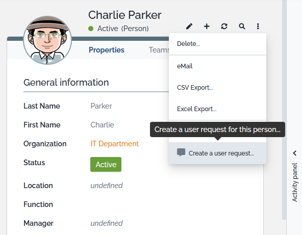 For example, the tab Teams displays all the teams for which the selected person is a member of. The Tickets tab displays the tickets for which the selected person is the requester.