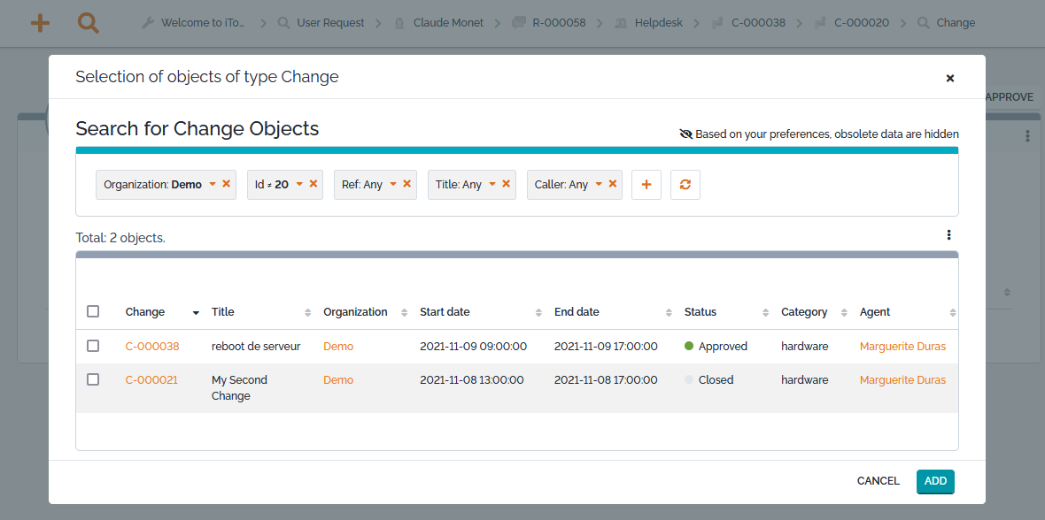 There are two ways to display the contents of an object, the choice being made in the user preference. This navigation setting applies on all objects of iTop, in read and edit modes.