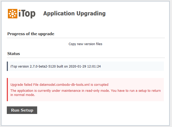 This mechanism applies on Setup, when iTop Hub pushes an extension, when the ITSM Designer pushes a new datamodel and on an Application upgrade