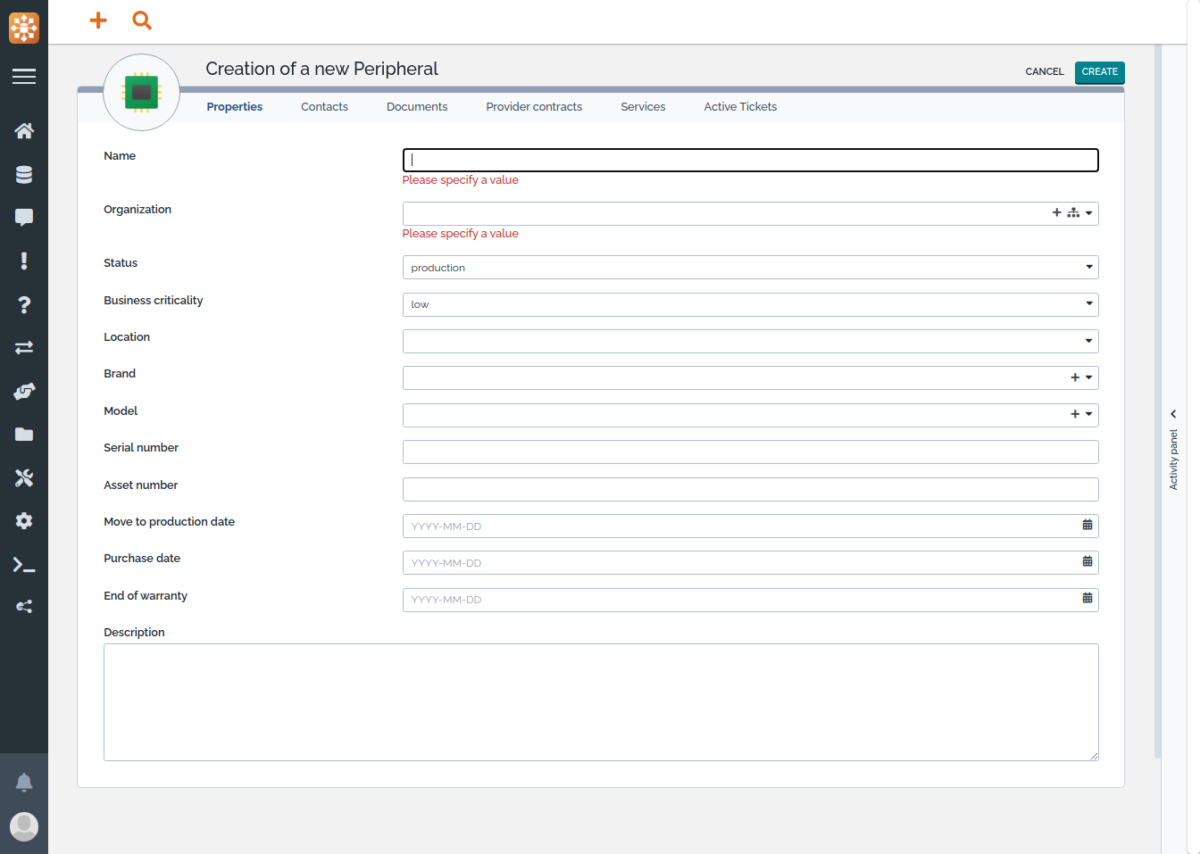 document in iTop any kind of computer peripheral, for example: