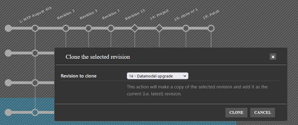 done between the clone of the production (revision 14) and the end of the patch revision (#19).