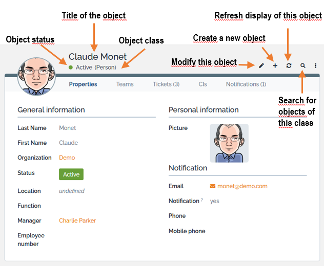 There are two ways to display the contents of an object, the choice being made in the user preference. This navigation setting applies on all objects of iTop, in read and edit modes.