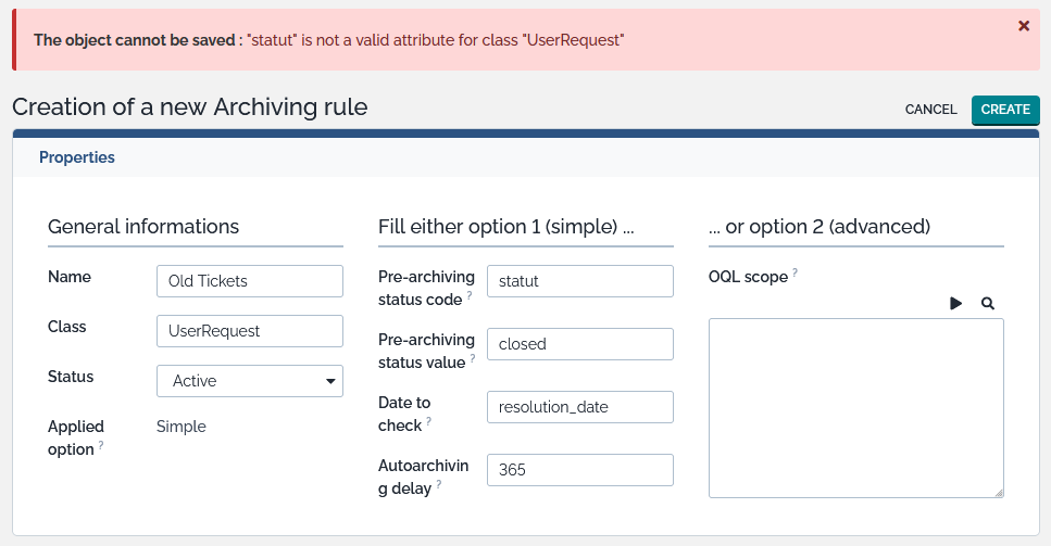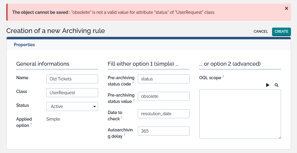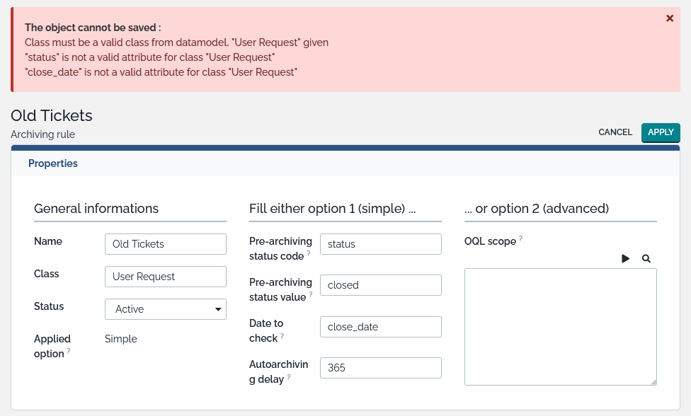 Define the Auto-archive delay in months(by default: 12 months): only objects with a date to check older than this delay are in scope - mandatory for simple option