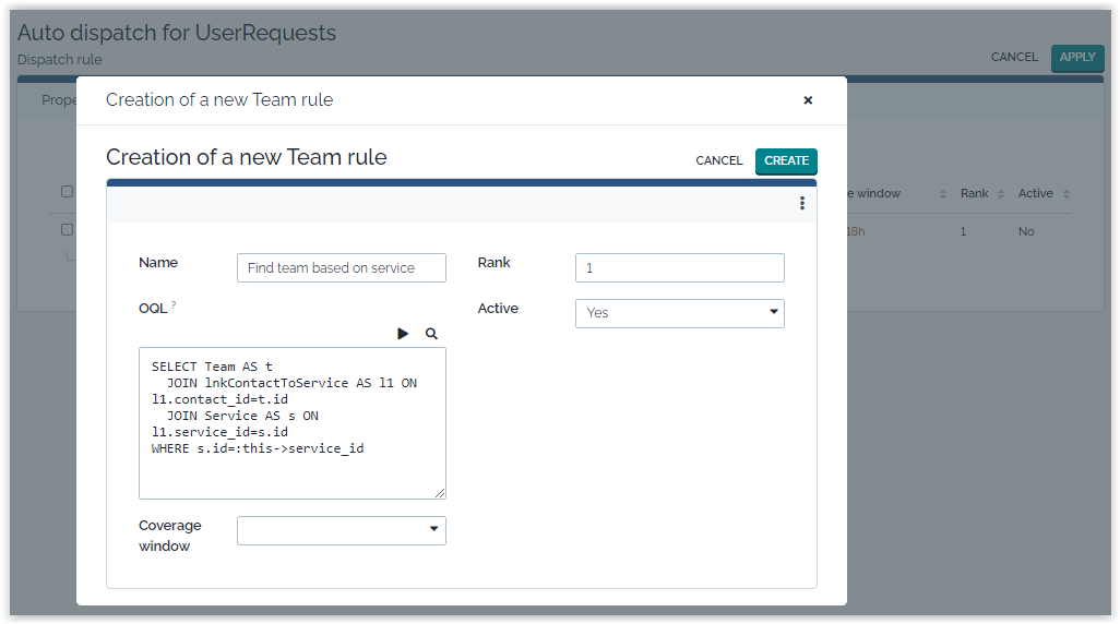 | Coverage window | Optional | The Team rule will be used only if we are within the Coverage window |