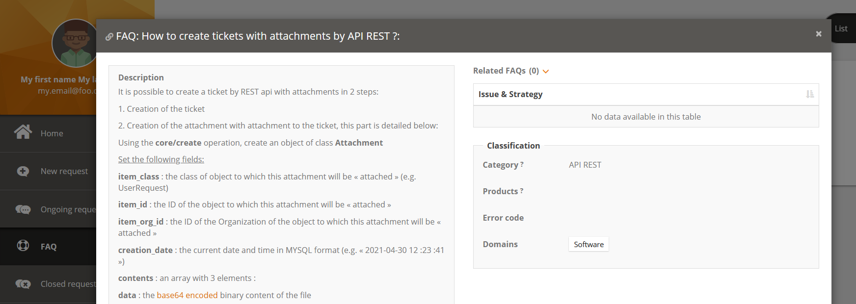 Otherwise, if you have entered Key words on the Ticket, they will be used to filter the FAQs