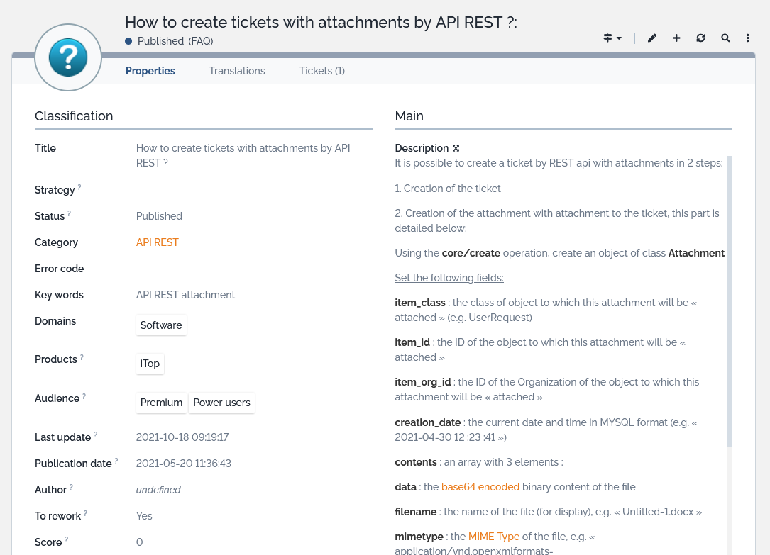 'UR-to-FAQ' => array ( 'source_scope' => 'SELECT UserRequest', 'allowed_profiles' => 'Problem Manager,Support Agent,Administrator', 'menu_label' => 'Create a FAQ...', 'menu_label/FR FR' => 'Créer une FAQ...', 'form_label' => 'Create a FAQ from %1$s', 'form_label/FR FR' => 'Créer une FAQ à partir de %1$s', 'report_label' => 'Created from %1$s', 'report_label/FR FR' => 'Créée depuis %1$s', 'dest_class' => 'FAQ', 'preset' => array ( 0 => 'copy(title,title)', 1 => 'copy(key_words,key_words)', 2 => 'copy(description,description)', ), 'retrofit' => array ( 0 => 'set(faq_candidate,done)', // Requires Problem Manager to be allowed to update Tickets ), ),