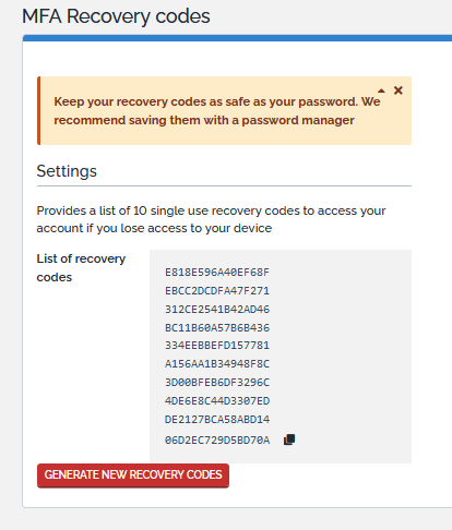 MFA Recovery codes
