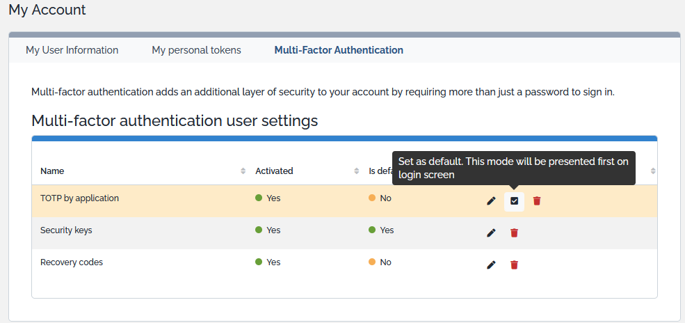 MFA modes can be configured by Users