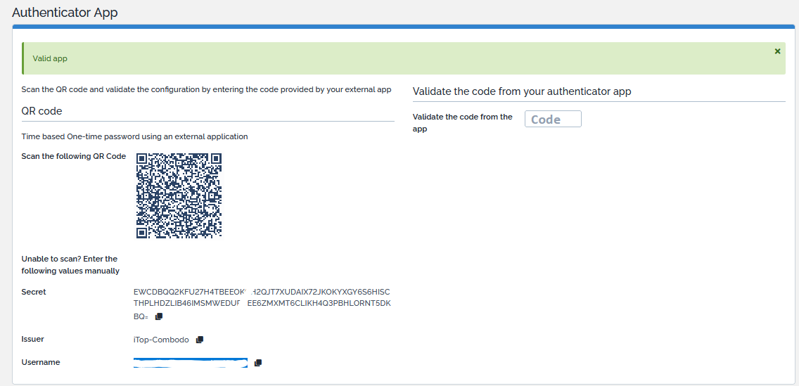Once finished, if iTop let you get in, the MFA is configured successfully.