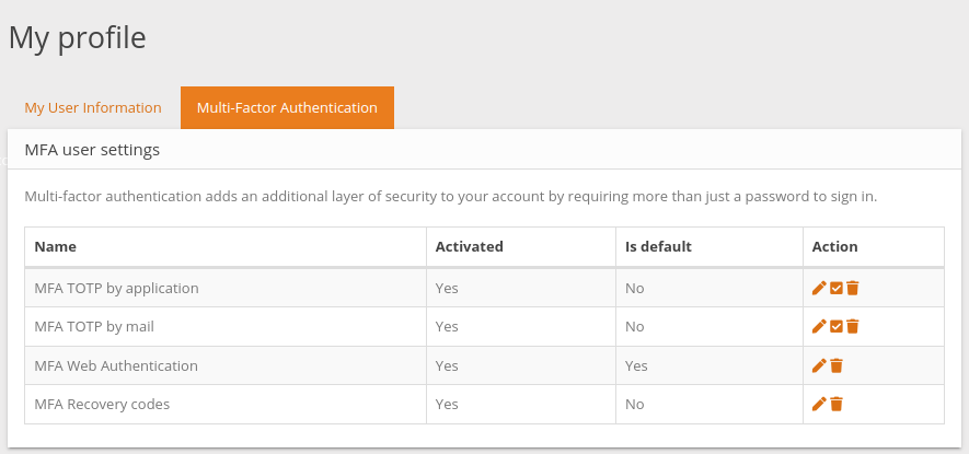 Portal users have access to MFA configuration in their āMy profileā page.