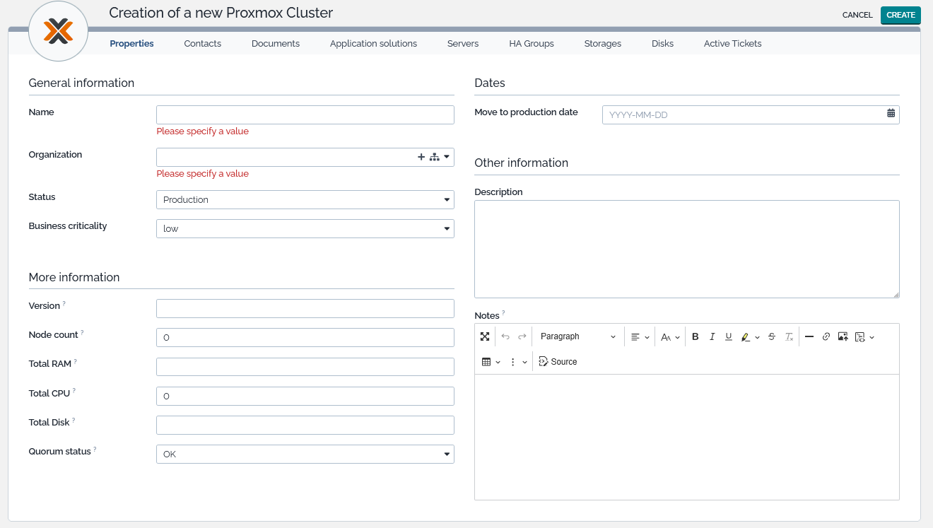 | Proxmox cluster | Alphanumeric string | Name of the CI | Yes |