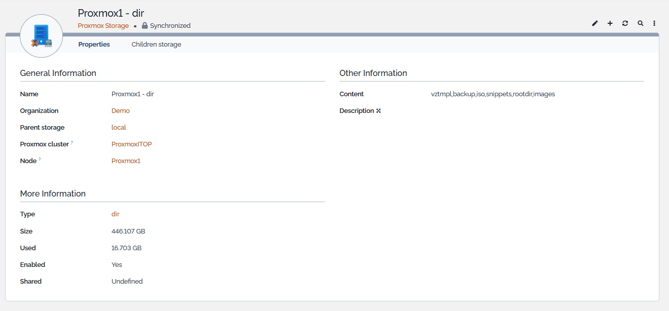 | Proxmox cluster | Foreign key to a(n) Proxmox Cluster | Cluster to which the storage belongs | Yes |