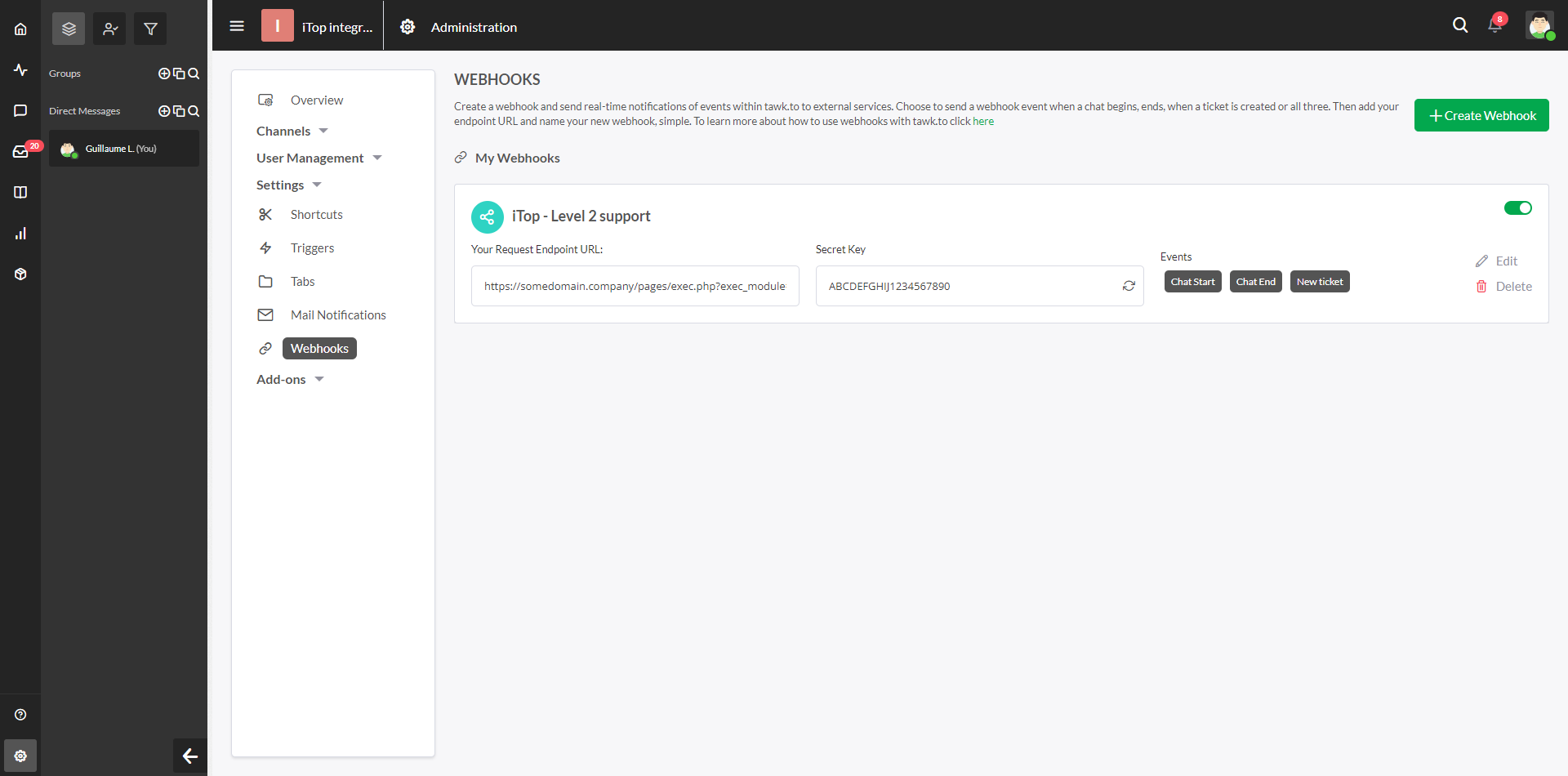 Add webhook from tawk.to to iTop