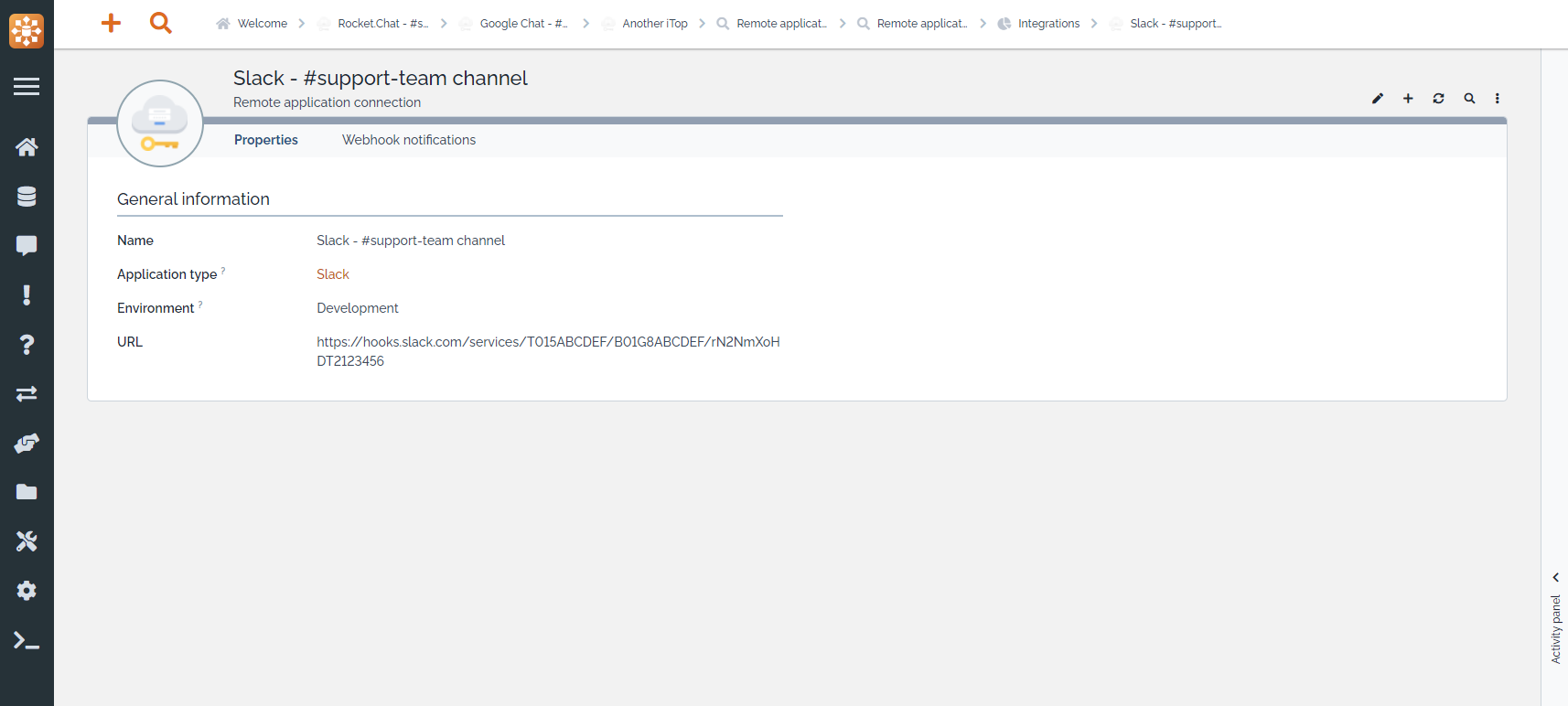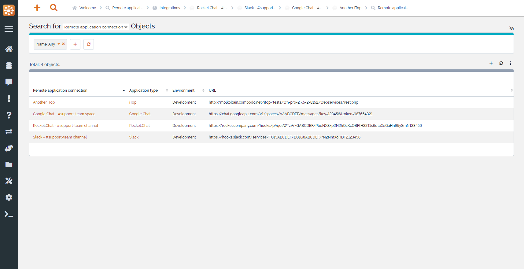 This chapter has to be use if you want to connect to an application using directly its REST/JSON API, and if it is not already preconfigured in iTop like Slack, Google or Rocketchat