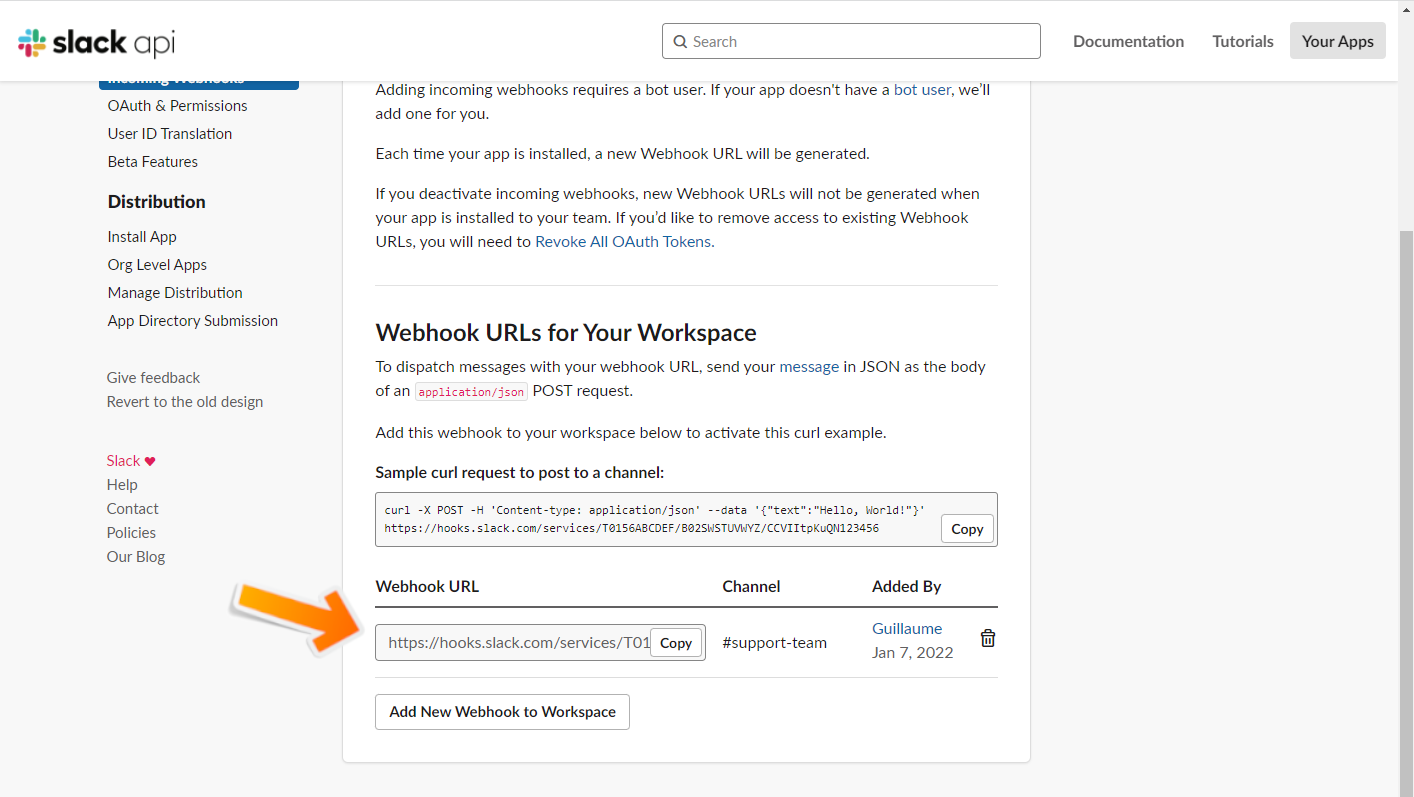 Go the the Webhooks menu, and create a âRemote Connexion using