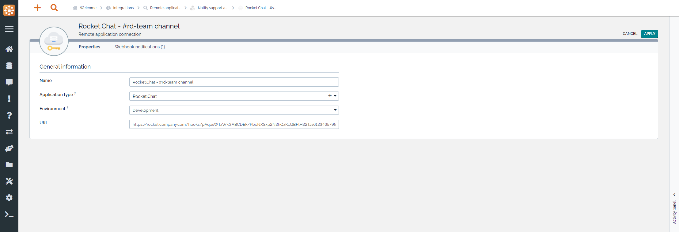 Rocket.Chat notificationto send a message to a Rocket.Chat channel / user -