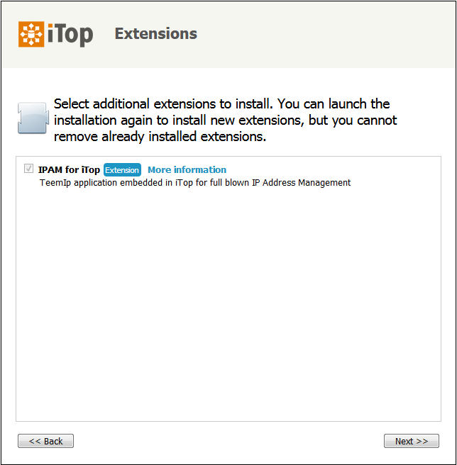 IPAM for iTop is the module / extension version of TeemIp that can be integrated on an existing iTop instance. It only provides the core IP management features embbeded in TeemIp standalone. Other features are available for iTop through extensions.