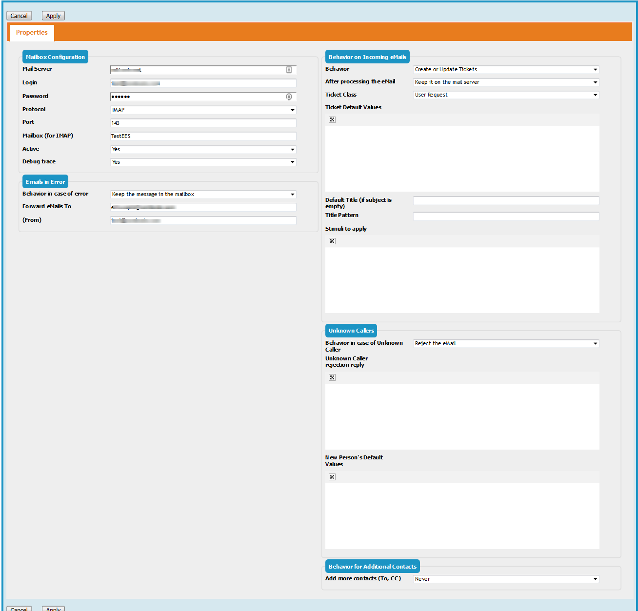 Each mail inbox configured corresponds to one type of Ticket (i.e. User Requests or Incidents, but not both).