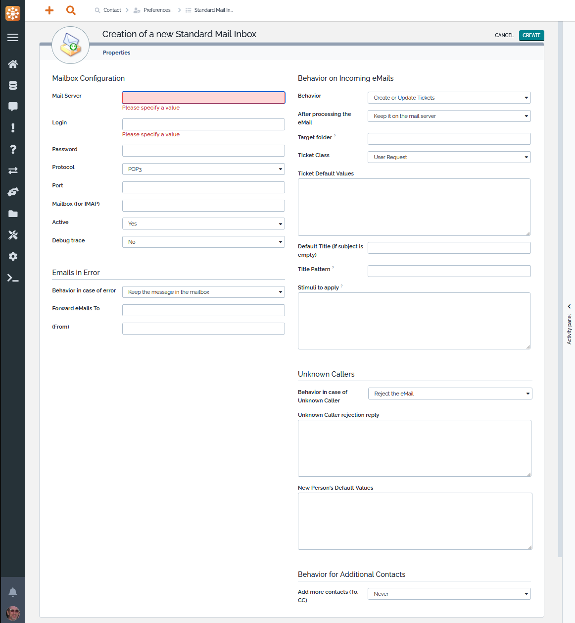 • Determine if the sender is an existing Person (found by its email), then based on configuration it can reject the email in error or create a new Person.