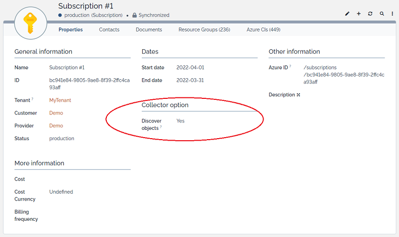 Once subscriptions are discovered and documented in iTop, their “Discover objects” attributes is set to 'no' by default,
