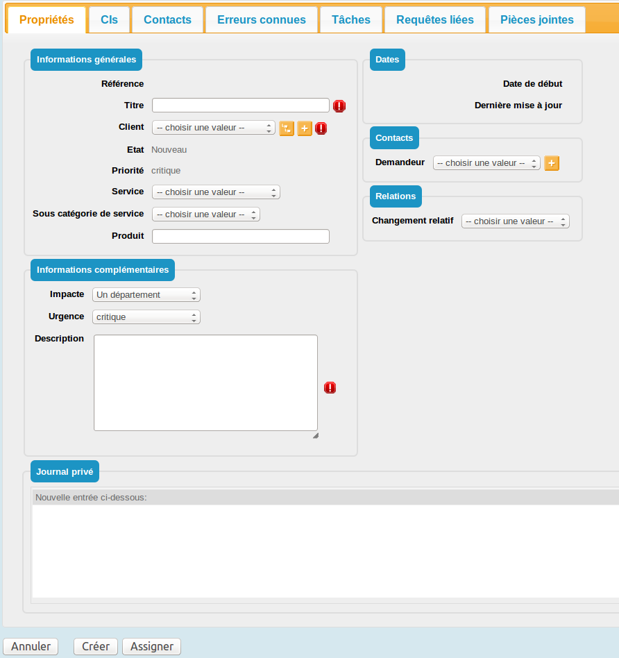 | Requêtes liées | Toutes les requêtes avec lien à ce ticket |