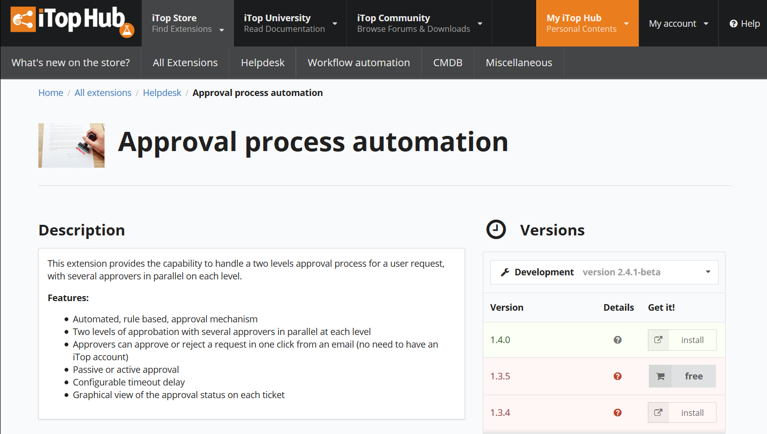 You can access iTop Hub's extensions store here: iTop extensions.